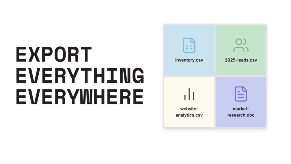 To break those silos, export your data from each vendor/platform. Most systems allow you to download your records as CSV or Excel files. For example: